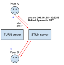 - WebRTC에서는 이것을 해결하기 위해 'STUN, TURN' 서버를 이용함